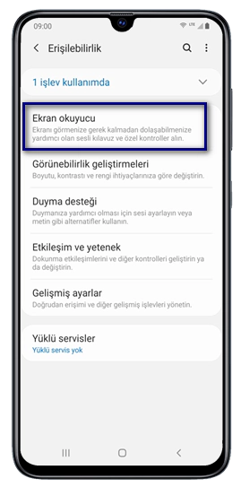 3 Ekran Okuyucu seçeneğine bir kez dokunup seçin, ardından iki kez art arda dokunarak giriş yapın.
